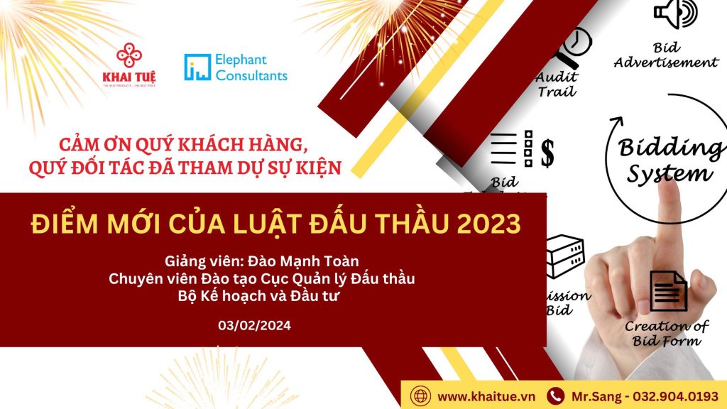 Vào ngày 03/02/2024 vừa qua, Khai Tuệ hân hạnh tổ chức buổi đào tạo online nhằm hỗ trợ Quý khách hàng & Quý đối tác kịp thời cập nhật những điểm MỚI – QUAN TRỌNG – KHÔNG THỂ BỎ QUA của LUẬT ĐẤU THẦU số 22/2023/QH15 (có hiệu lực từ ngày 01/01/2024). Với những thông […]